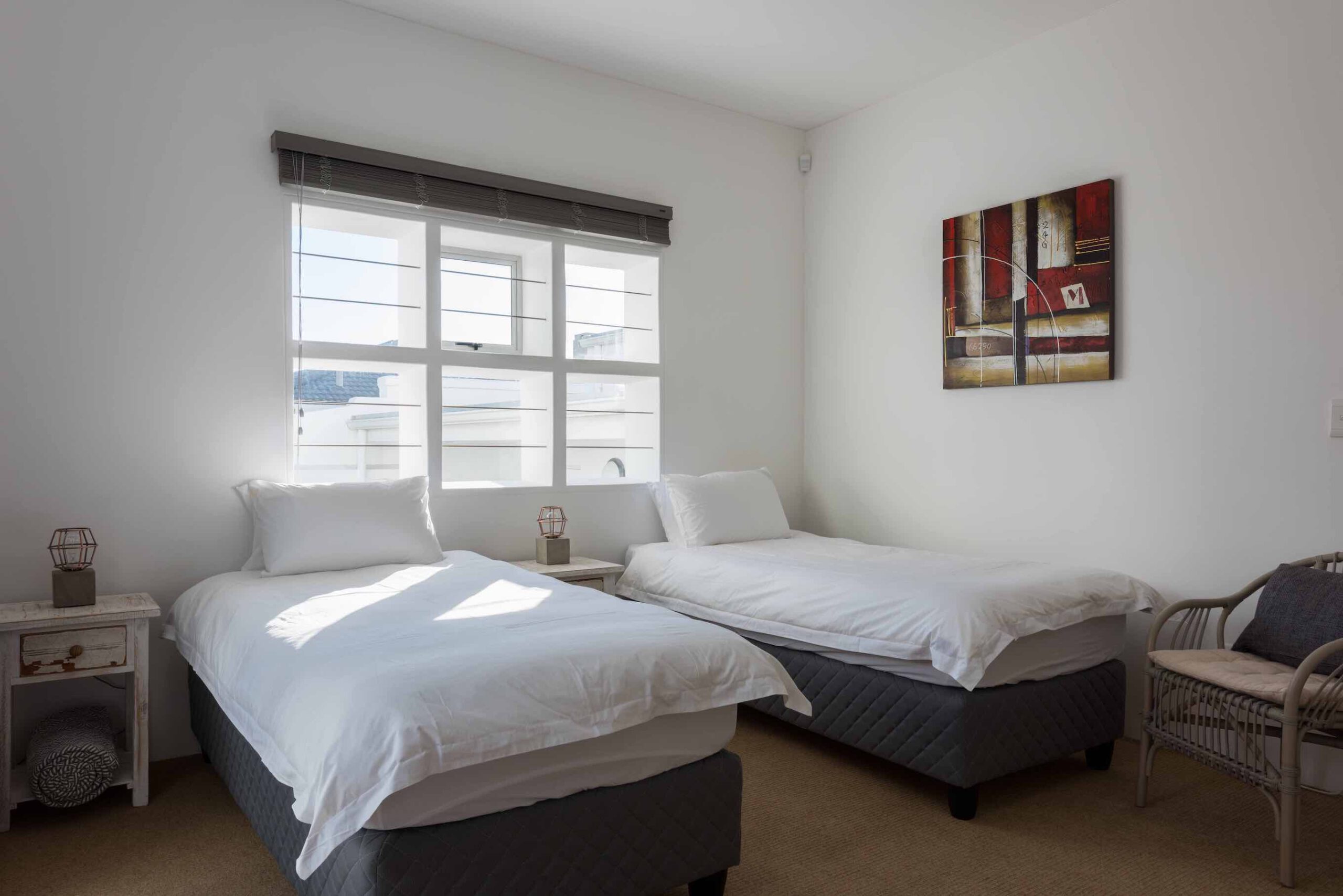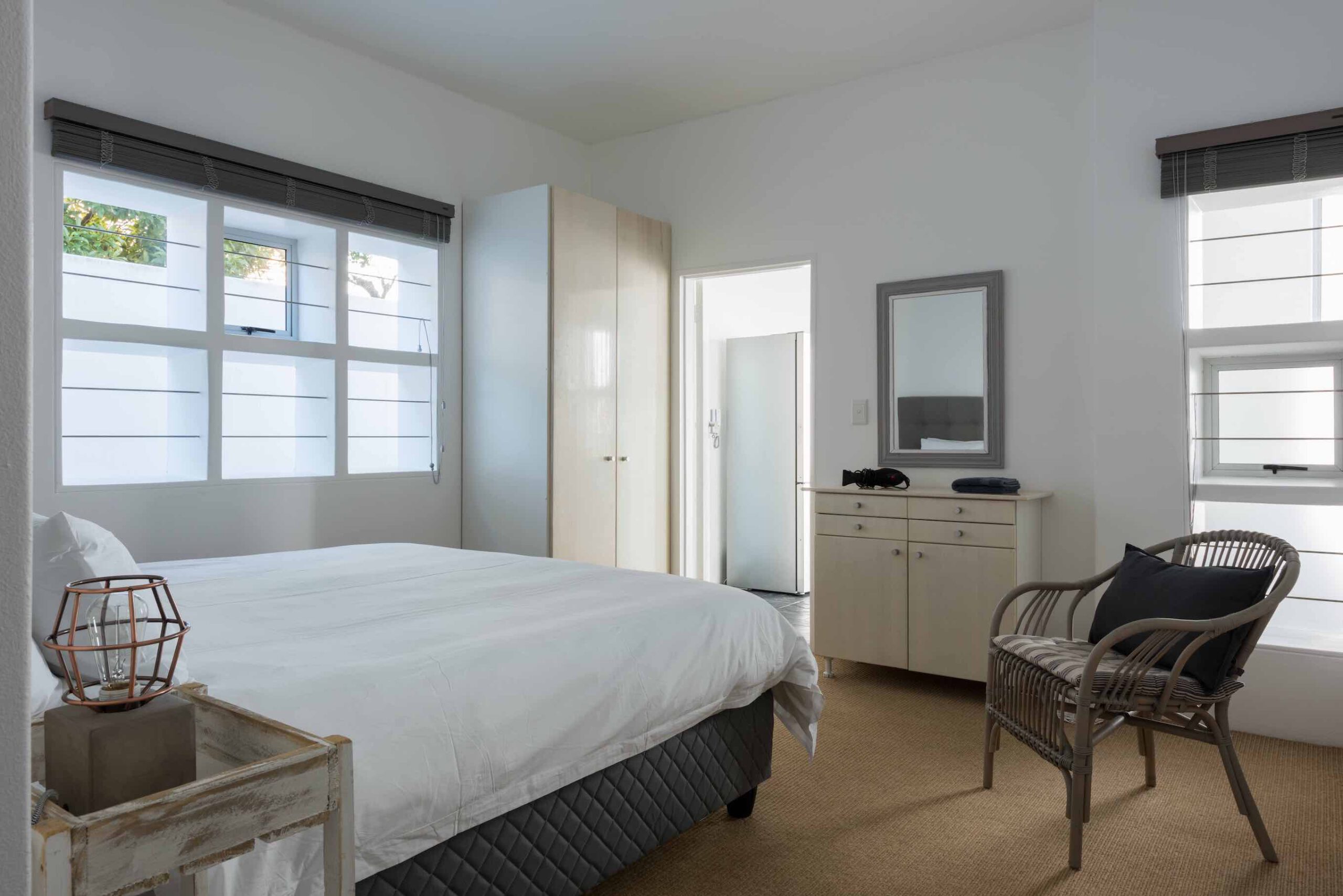 Geniessen Sie ihren Aufenthalt bei einem Glas südafrikanischen Wein in dem privatem Patio. Ein Grill lädt zu einem traditionellen Braai ein. Die Mahlzeiten bereitet man auf den rustikalen Betonflächen in der Küche zu. Unsere Zimmer sind mit Kingsize Betten ausgestattet, und haben ein gemeinsames Bad. Ein perfekter Ort, um sich wie zu Hause zu fühlen. Für Wassersportler bieten unsere Apartments auch einen gemeinsamen Lagerplatz für das Equipment.
